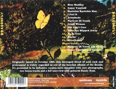 (both of which would shortly be re-recorded for the Dragonfly LP), was much truer to the band's sound. When it too died a death, however, the disillusioned band left California and resumed gigging. "Our first gig just out of LA was in Waco, Texas, and we were fired because we were too loud!" Asked whether they were influenced by Blue Cheer - generally acknowledged to have been the loudest US band of 1968 - Randy simply states "We liked Summertime Blues, but none of us had any of their music." By mid-1968 the band was a formidable live force. "As time went by, we got more and more
